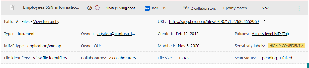 Then, you can create file policies in Defender for Cloud Apps to control files that are shared inappropriately and find files that are labeled and were recently modified.