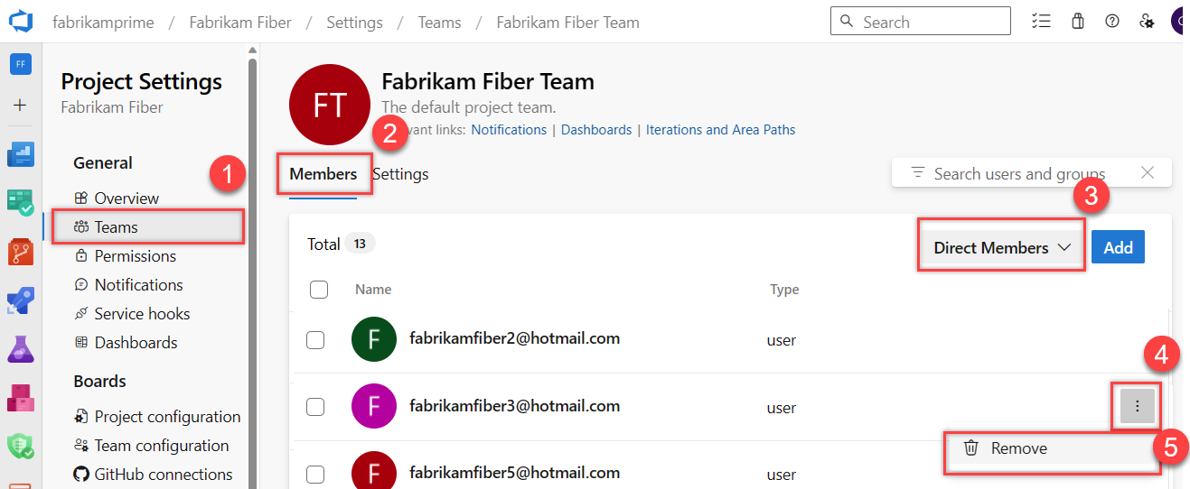 In the Project Settings for the Team, review the team membership in the Members section.