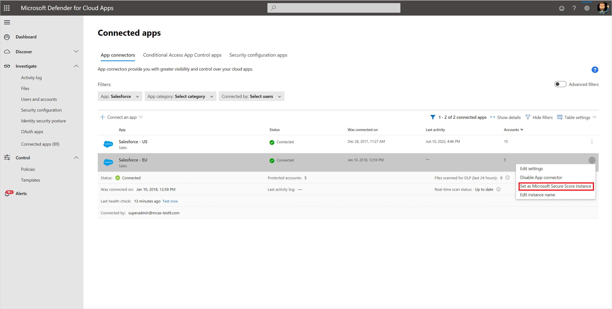 - The connected app icons on the Cloud App Security dashboard were aligned with the status of the apps as displayed on the dashboard to reflect the last 30 days.