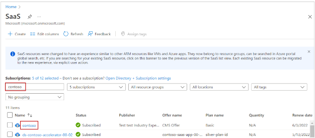 The SaaS screen in the Azure portal shows all your SaaS subscriptions.