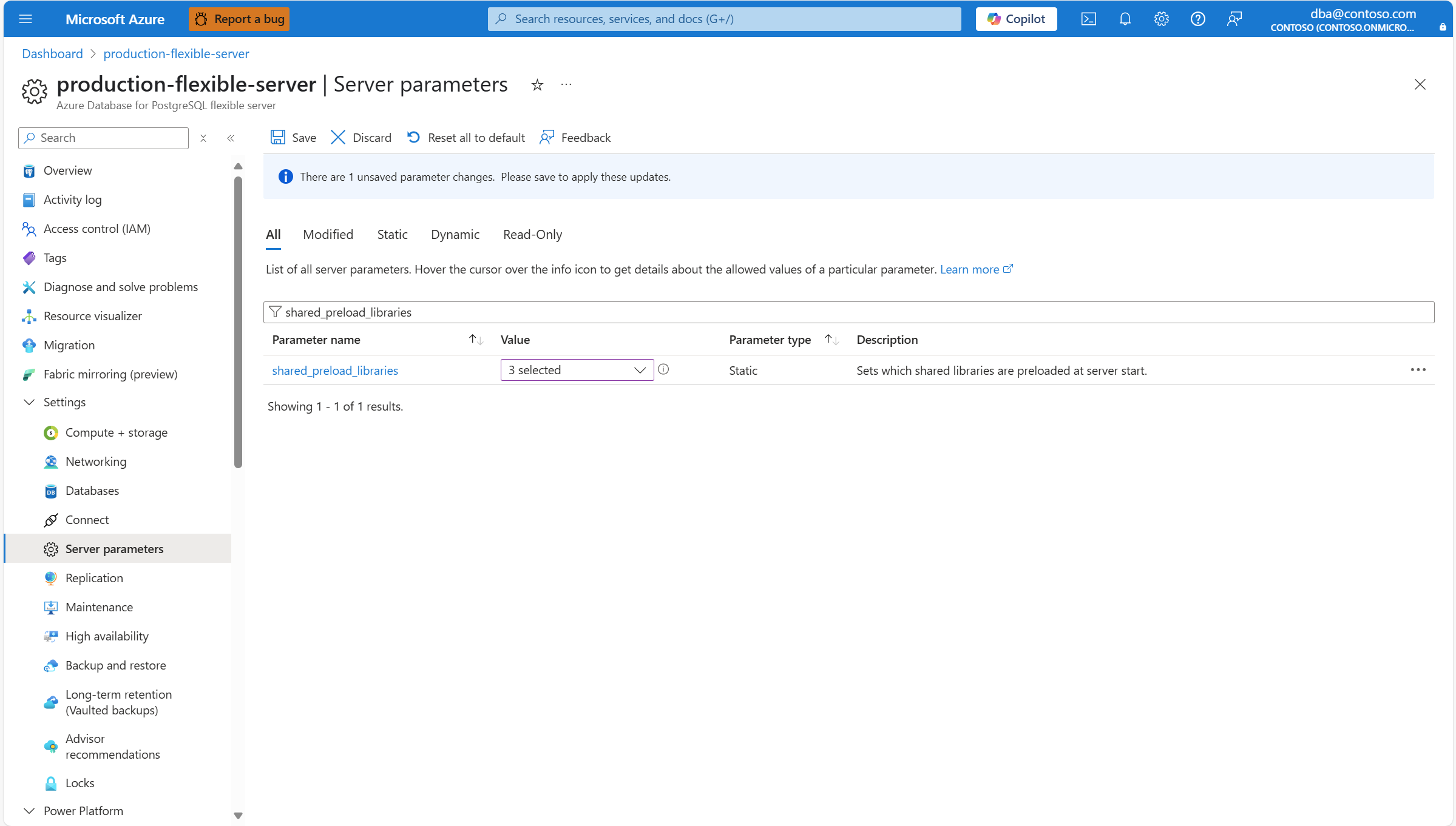 shared_preload_libraries 是一个服务器配置参数,用于确定在 Azure Database for PostgreSQL 灵活服务器实例启动时必须加载哪些库。 必须通过此参数加载使用共享内存的所有库。 如果需要将扩展添加到共享预加载库,请执行以下步骤: