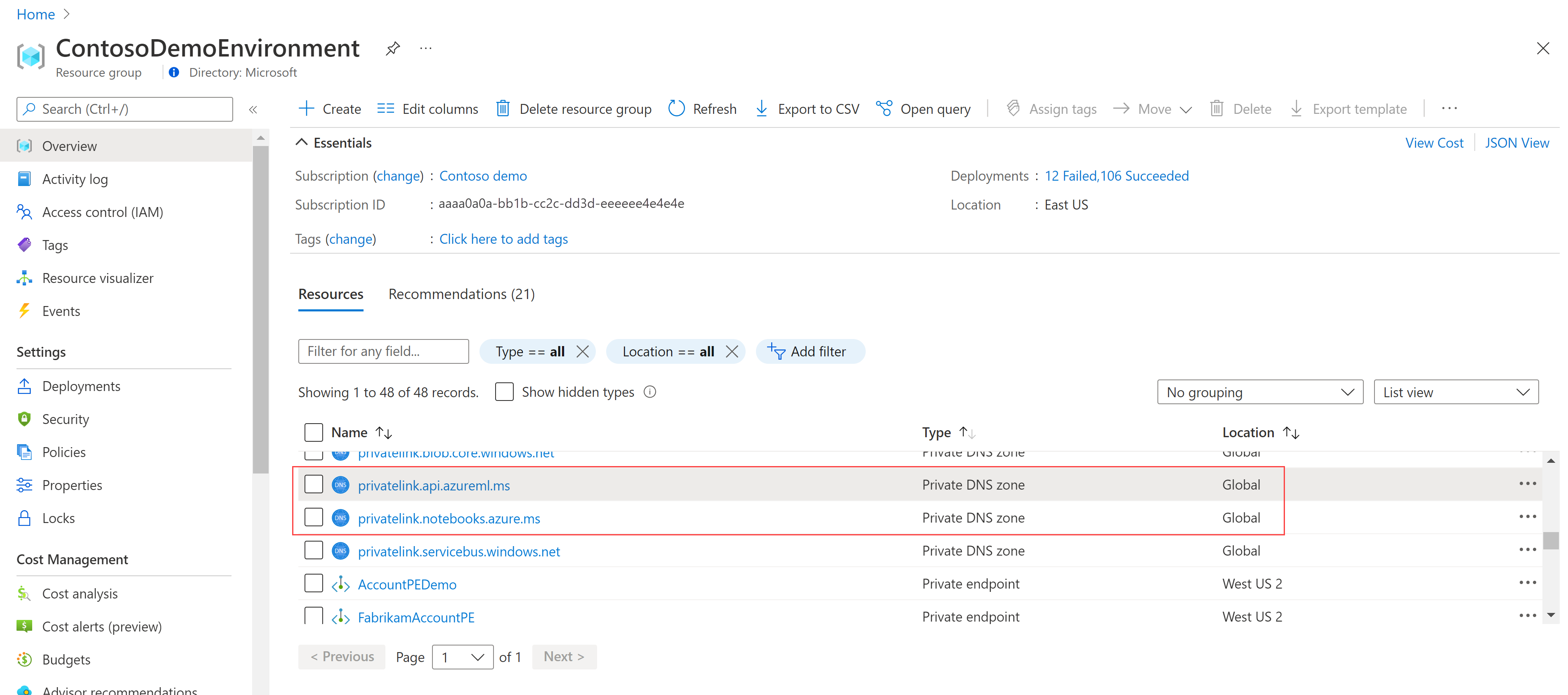 在云中创建工作区可能需要几分钟时间。 在此期间,工作区的“概述”页显示当前部署状态,并在部署完成后进行更新。