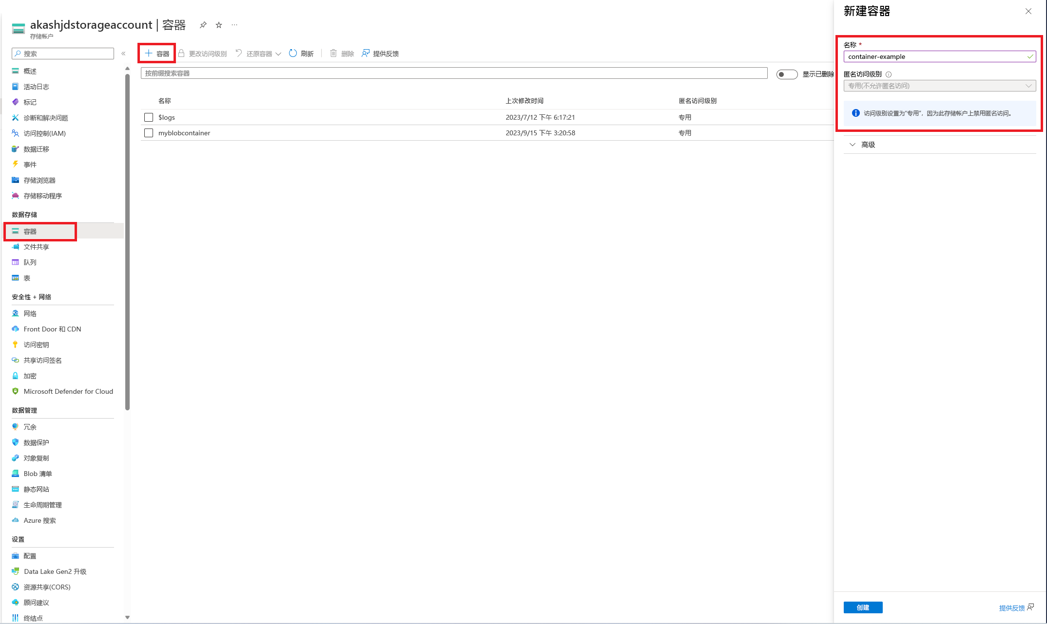 设置对容器的匿名访问级别。 默认级别为“专用(禁止匿名访问)”。