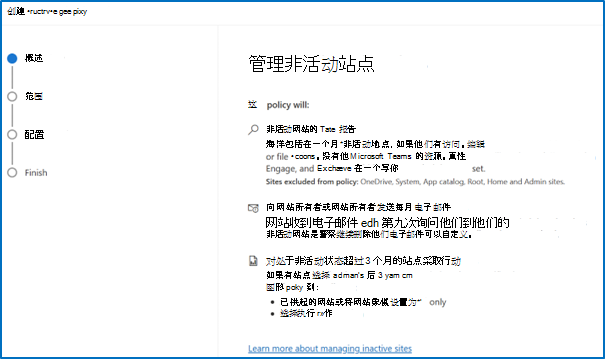 选择“+ 创建策略”。 查看 “管理非活动网站 ”信息,然后选择“ 下一步”。