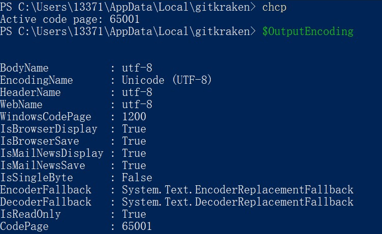 chcp 65001 [Console]::OutputEncoding = [System.Text.Encoding]::UTF8