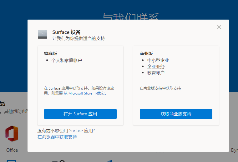 联系Surface在线支持:联系我们 - Microsoft 支持部门