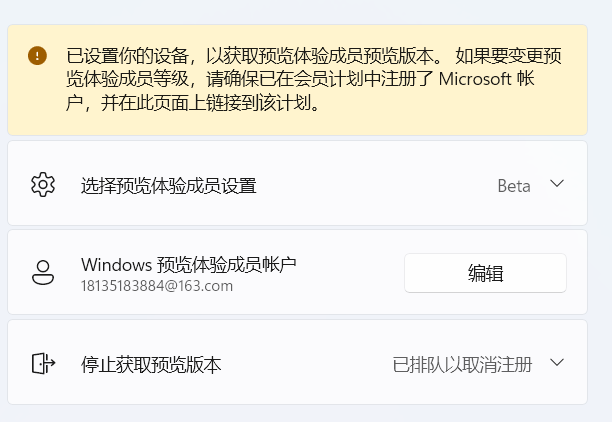 ——“如果你不想再接收 Insider Preview 版本,则必须取消注册设备。如果不退出计划,则会继续收到电子邮件。取消注册设备: