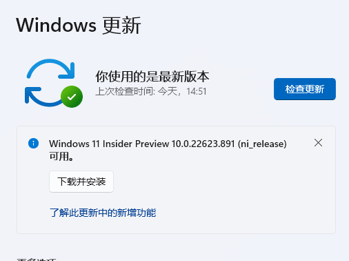 则在正式版版本号达到22621.891之前您将不会进一步收到更新
