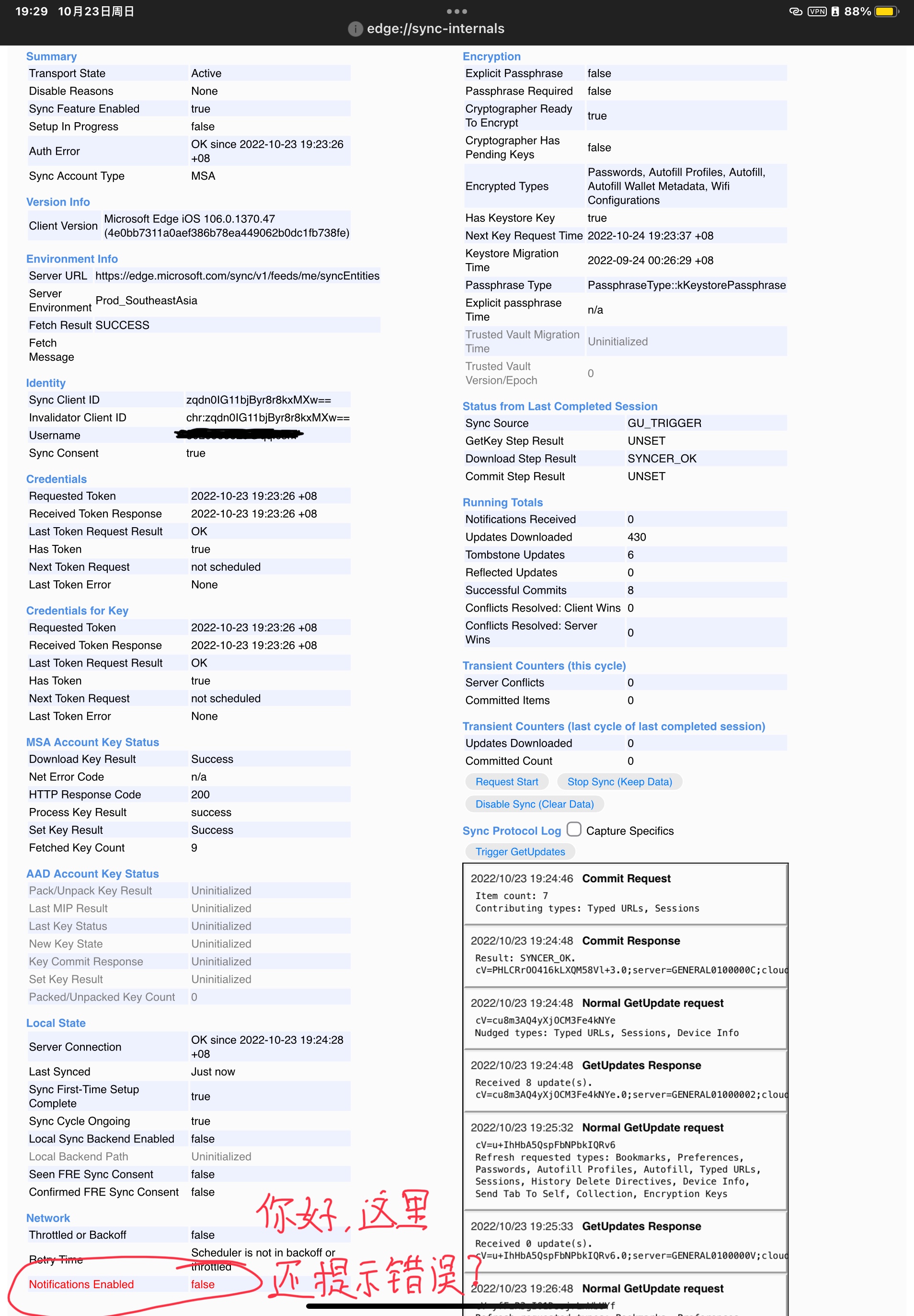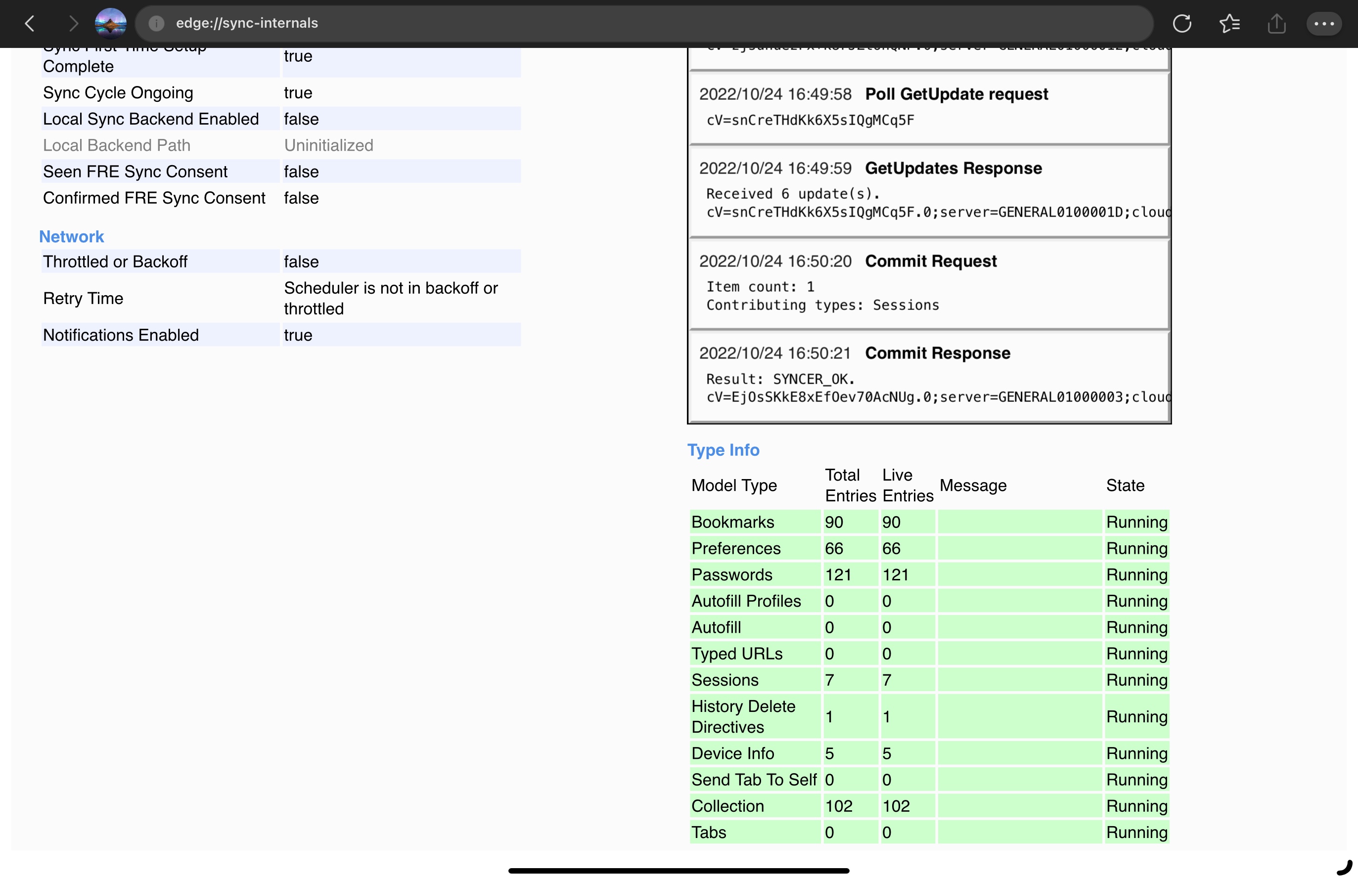 很抱歉给您带来了不便。针对您遇到的同步问题,建议您分别在每台设备上打开Edge,在浏览器地址栏中输入edge://sync-internals,然后把页面截图保存下来发送给我们(因为包含个人隐私信息,请通过私信发送给我们),我们将通过这些截图分析无法同步的可能原因。