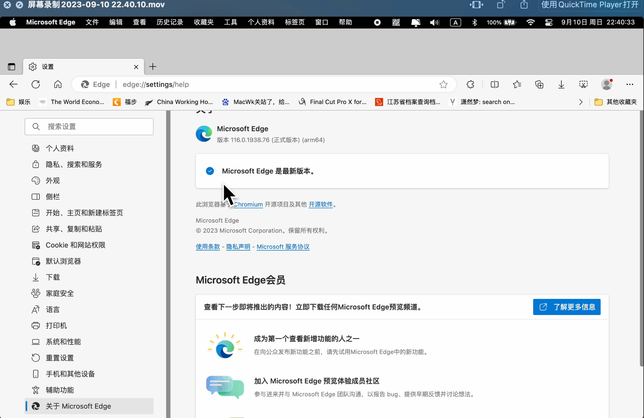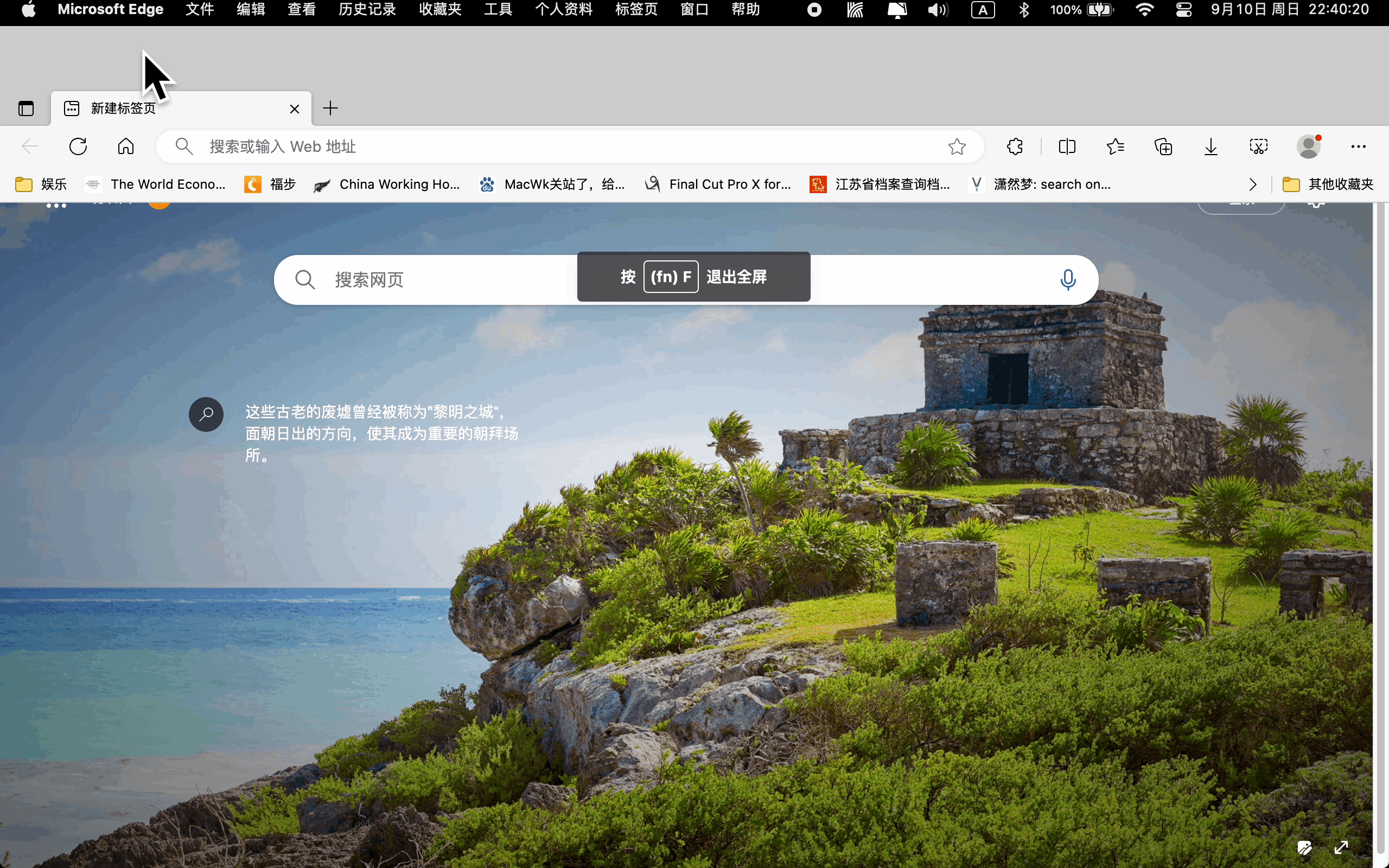 您指的是Edge哪里的工具栏,这边也在Mac上的edge进行了测试,测试版本为116.0.1938.76,全屏时没发现上方的功能栏或者设置打开的界面发生了变化。