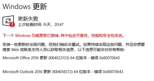 错误代码0x80070643,可能是因为未开启防火墙造成的。
