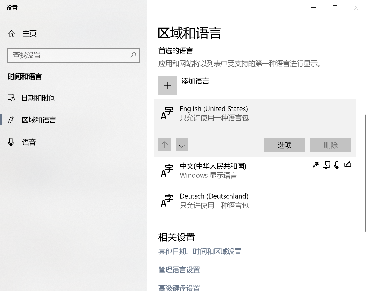 开始菜单--设置--区域和语言--删除“A字英语”