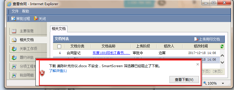 “window Defender smartScreen已阻止此不安全的下载”,导致附件下载失败。
