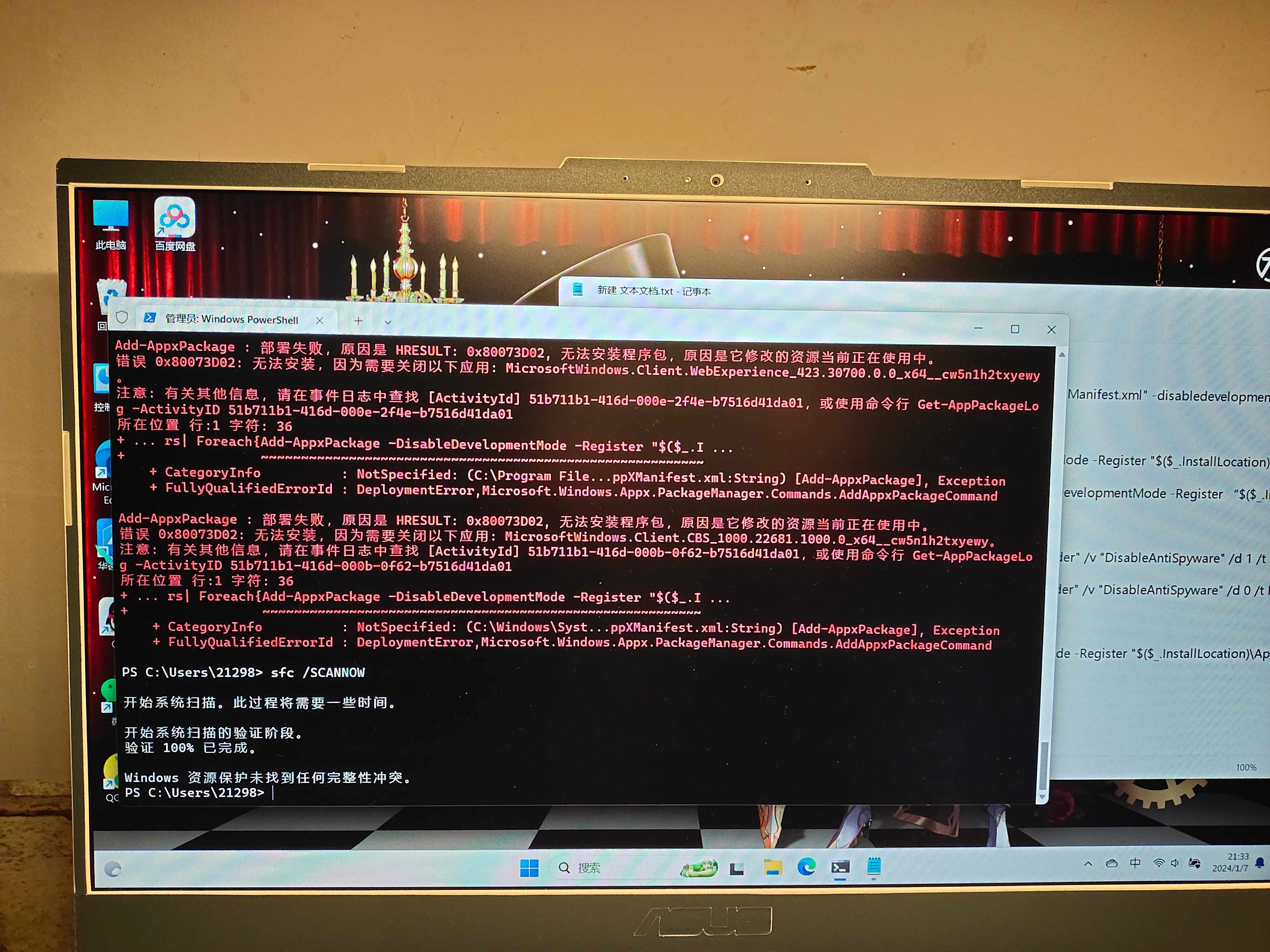 (按下Enter键)如果显示“未检测到组件存储损坏”,不必执行下面的2个命令。