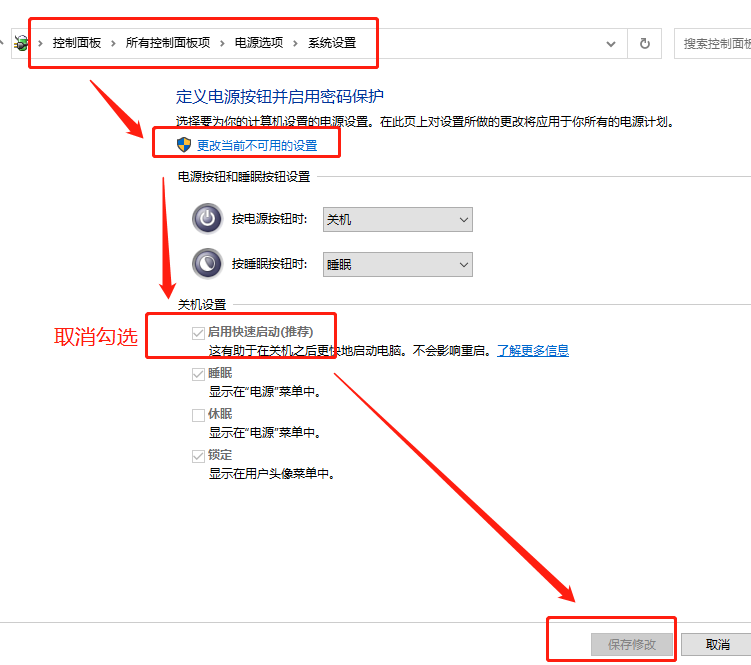 然后如下图关闭一下快速启动。