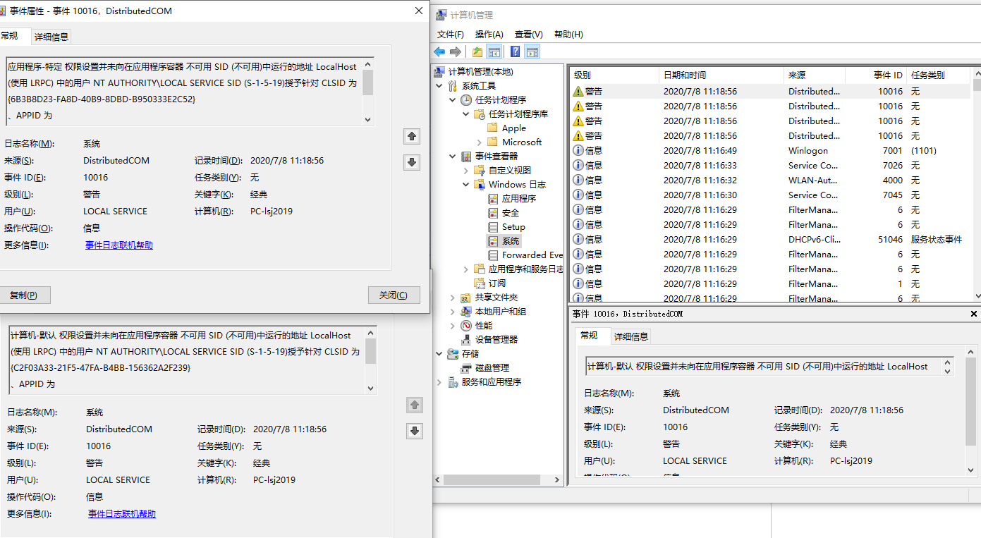 计算机-默认 权限设置并未向在应用程序容器 不可用 SID (不可用)中运行的地址 LocalHost (使用 LRPC) 中的用户 NT AUTHORITY\LOCAL SERVICE SID (S-1-5-19)授予针对 CLSID 为