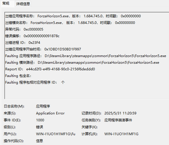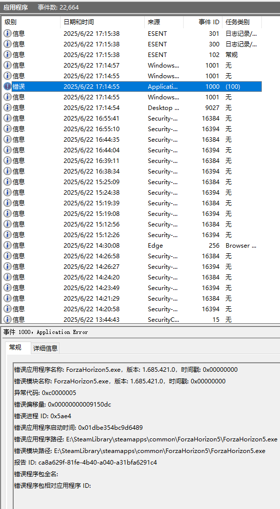 应用出现多次崩溃,在事件查看器中可查到的异常代码: 0xc0000005