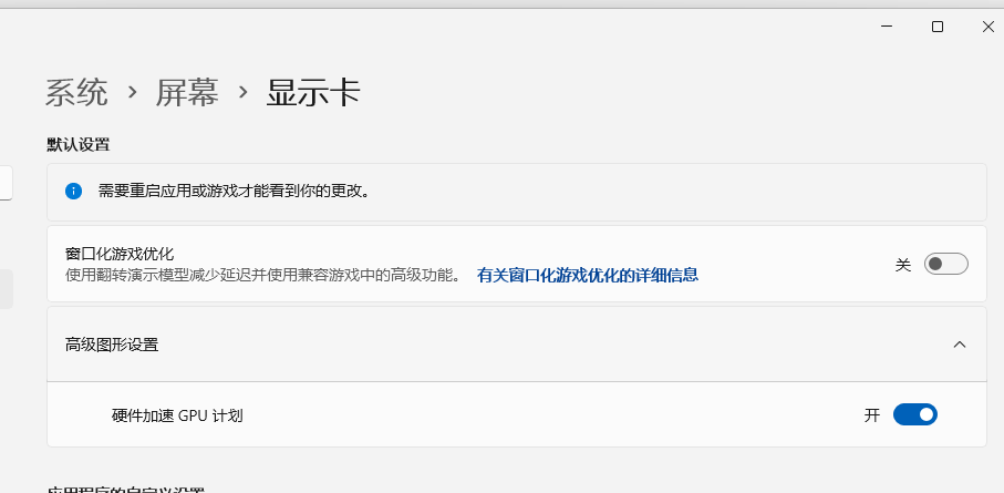 游戏上的DLSS设置不能打开,比如黑神话:悟空的DLSS能开启但是开启不了帧生成选项,战地5是完全不能打开DLSS,看了有关这个的解决办法就是打开GPU硬件加速,但是我这设置完不管重启多少遍还是没用,一直显示让我重启才能生效
