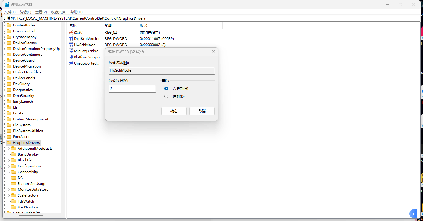 查找 HwSchMode 注册表并查看模式是如何写的,如果您有 1 或 3,则将其更改为 2。