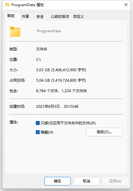 我的电脑一直是win11系统,最近突然发现C盘的空间变少了。然后经过多次的观察,我发现C盘中有个叫ProgramData的文件夹,有五个G,可自从开机之后,这个文件夹就会慢慢变大,直到把C盘占满,然后重启一下,C盘又会恢复原样。从始至终,这个文件夹显示的一直只有五个G。