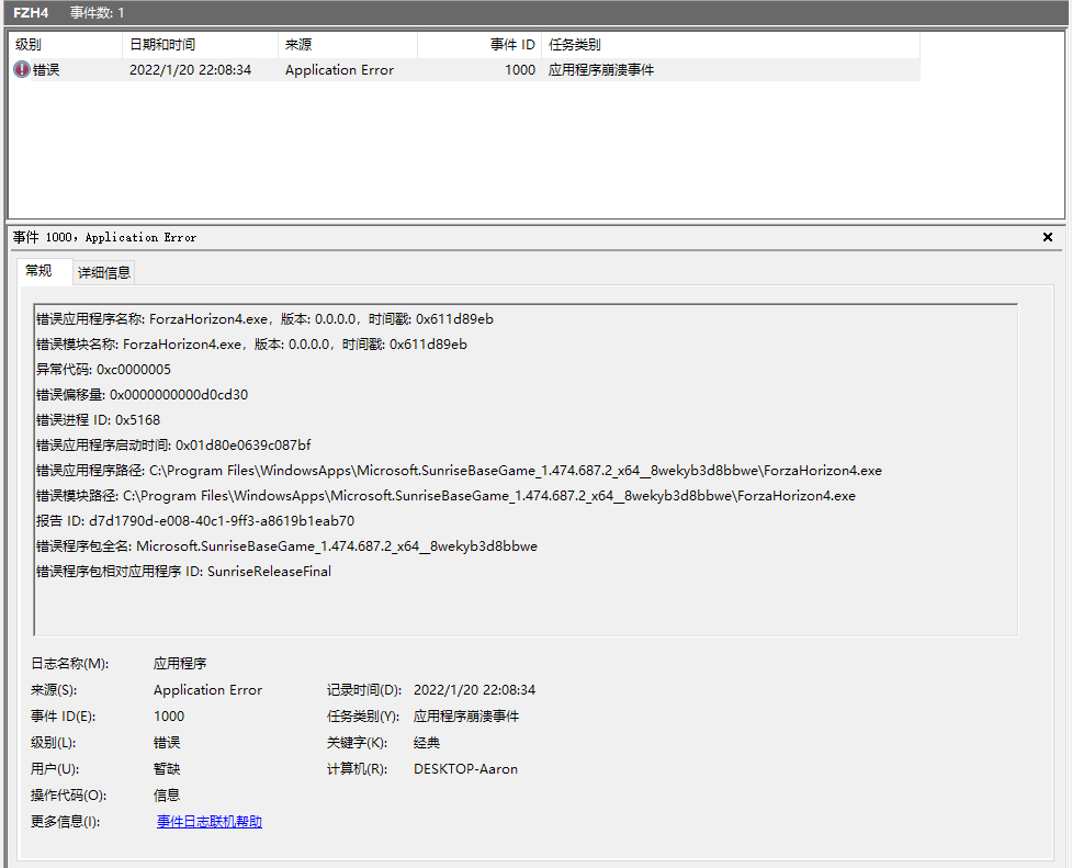 (闪退的时候没有任何错误提示,就是先画面卡住大概1-2秒,然后游戏直接崩溃退出,无报错,事后查看事件查看器,有以下纪录,截图如下)