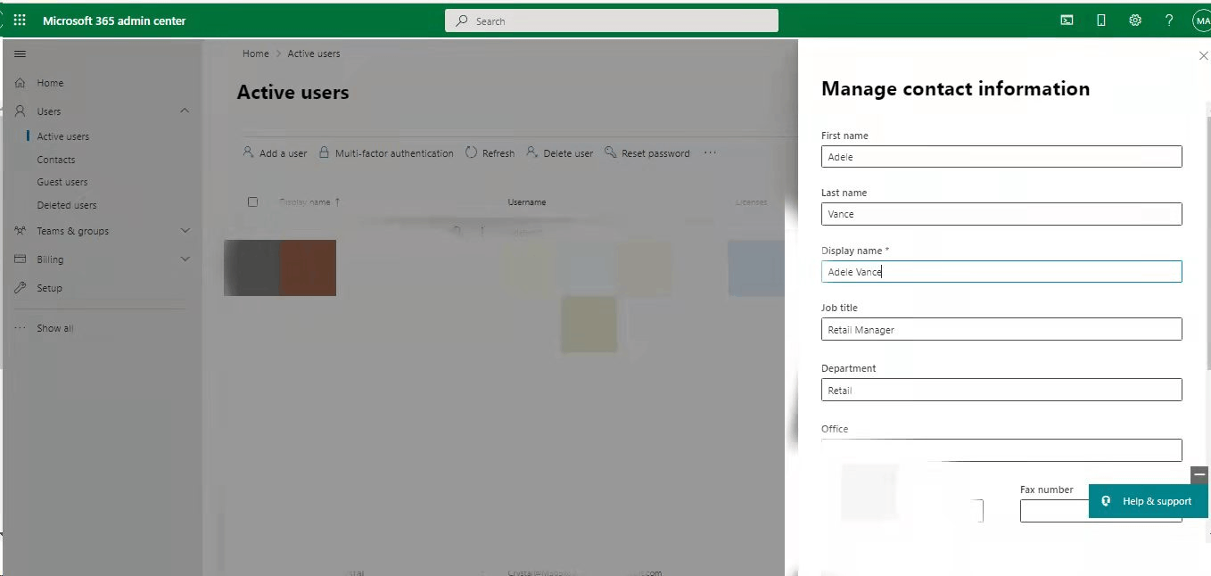 关于您的问题,我尝试在管理员中心中修改用户的显示名称,但是很遗憾修改之后在Teams中仍然没有什么变化。