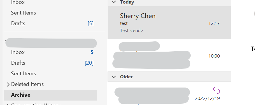 如果在此文件夹没有,那么由于邮件意外消失,可能是后台出现了一些问题,邮件可能错误的被移动到了其他地方。请问您使用的是M365商业版或者教育版的账户还是以outlook.com或者hotmail.com结尾的个人账户?