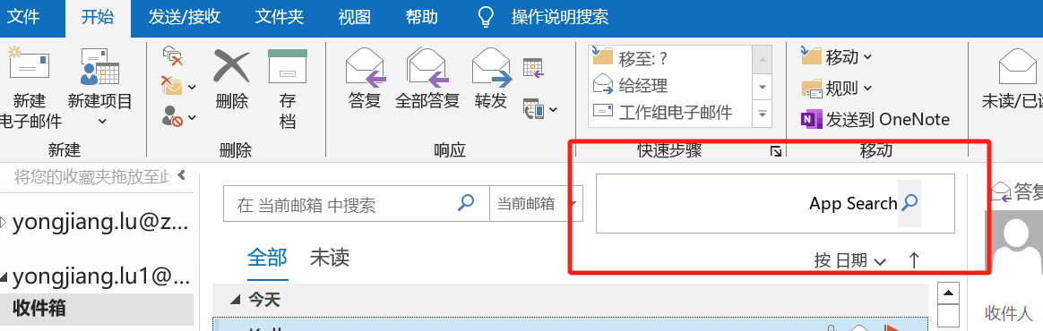 [Outlook 意外在邮件列表上方有一个应用搜索栏 - Microsoft 支持](https://support.microsoft.com/en-gb/office/outlook-unexpectedly-has-an-app-search-bar-above-the-message-list-c1bed629-0d4e-42d4-b66e-877cccb74b47 "support.microsoft.com")