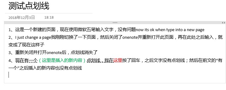 经测试 OneNote for windows 10版本 在输入文字的时候会出现黑色点划线 当您完成输入的时候点划线会自动消失