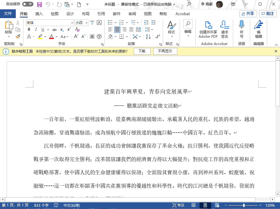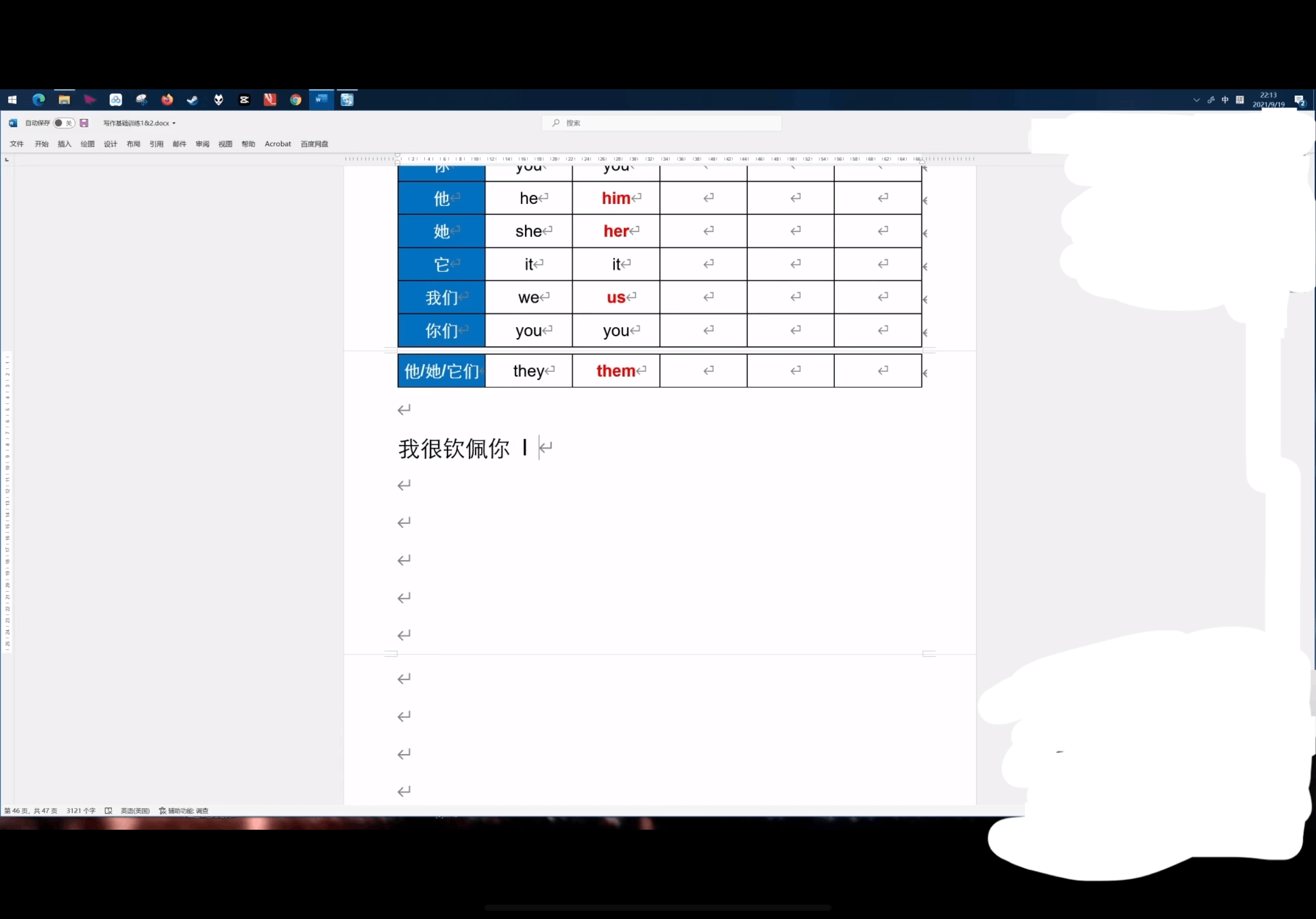您的问题是: word的外观颜色选择为白色,底部栏变为了蓝色