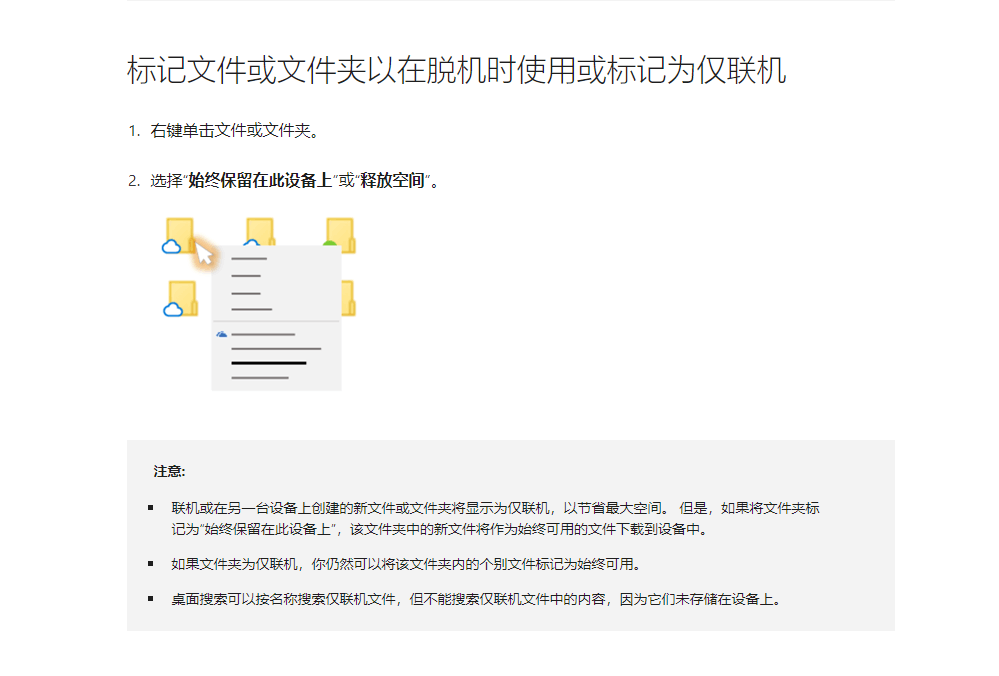 1.请右击该文件夹后,点击选择“始终保留在此设备上”后,等待同步状态结束后,再次右击点击“释放空间”。查看在同步状态结束后,该文件夹本机占用空间的大小。