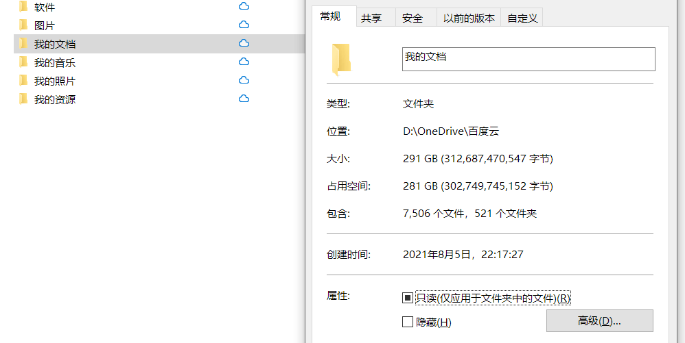 2.由于看到截图中,目前该文件夹似乎是上传了10GB左右的内容。同时,您提到打开该文件夹后,依然有些文件是下载至本机的图标(绿色勾子)。请您手动将一些文件再次右击选择“释放空间”后,查看整个文件夹的本机占用空间大小,是否有所改变?