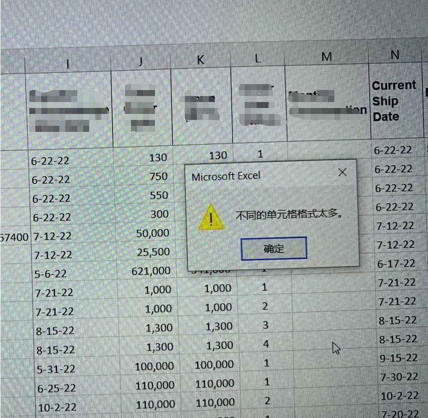 很抱歉,这个是一个Excel的局限性,在使用Excel 2007 以上版本时,如果说含有 4,000 种不同的单元格格式(条件格式,字体等)就会导致这个问题。