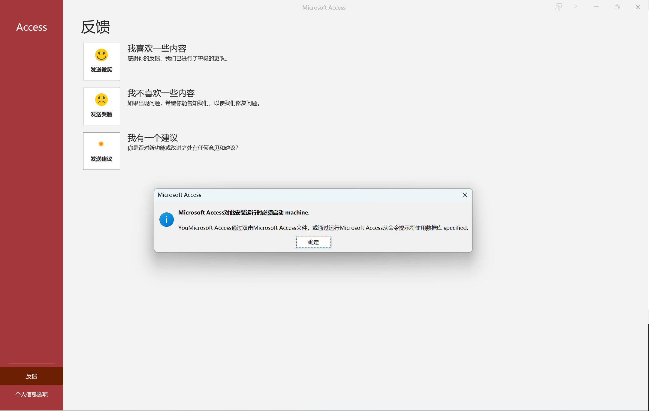 似乎您只安装了 Access 运行时。您是否还安装了完整的许可版本的 Access?