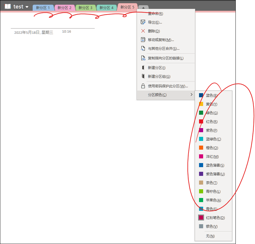 OneNote (Microsoft 2021 LTSC)自动创建的分区颜色杂乱无章。分区颜色的摆放顺序都不能按彩虹色??