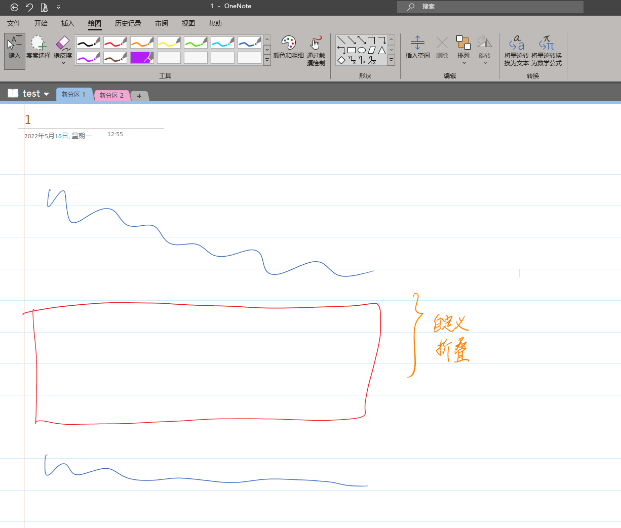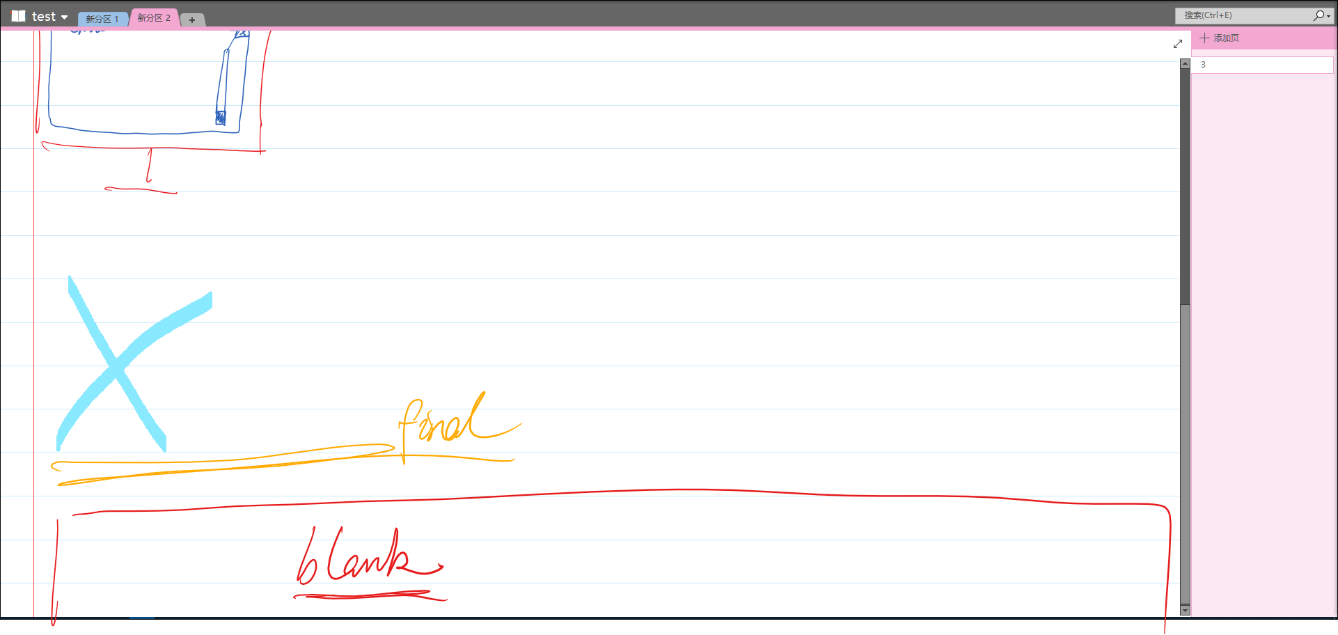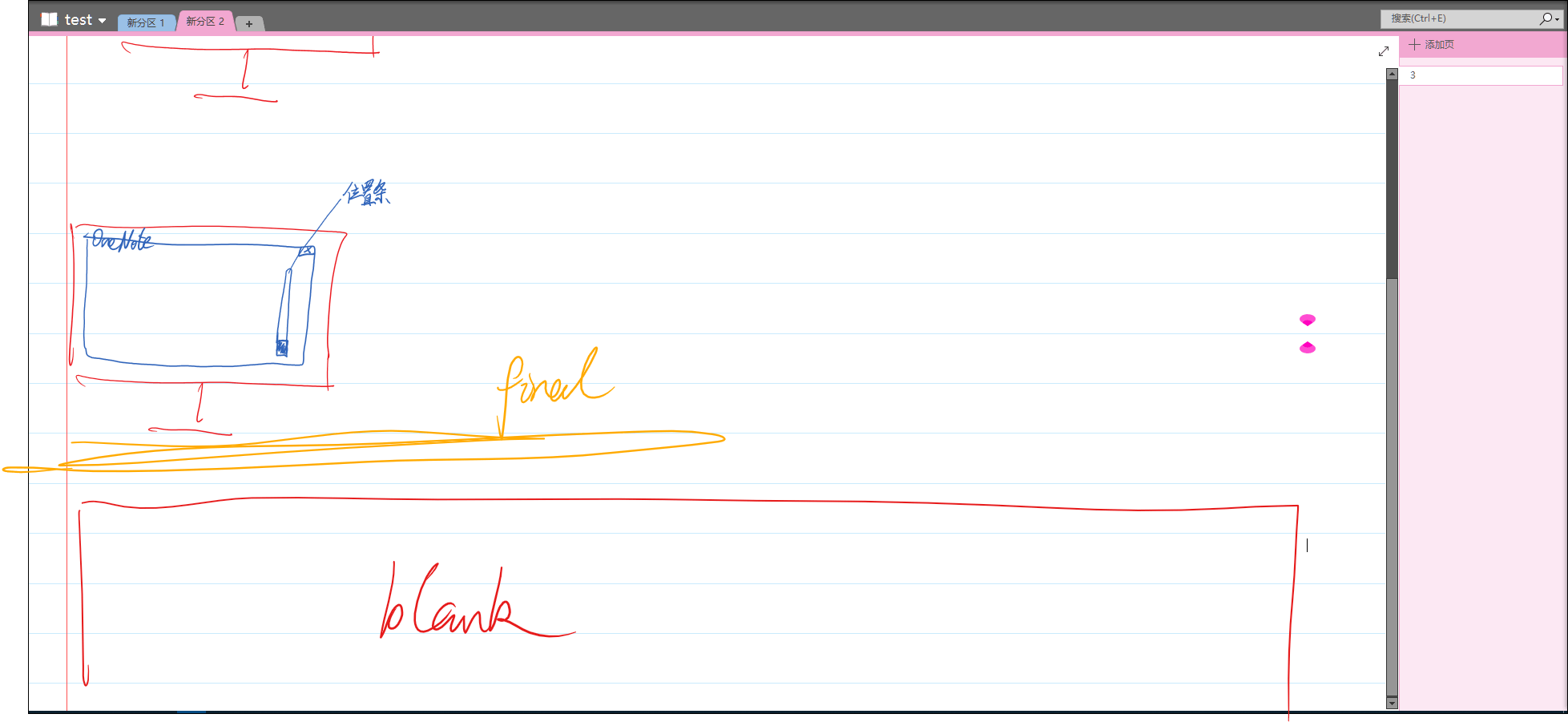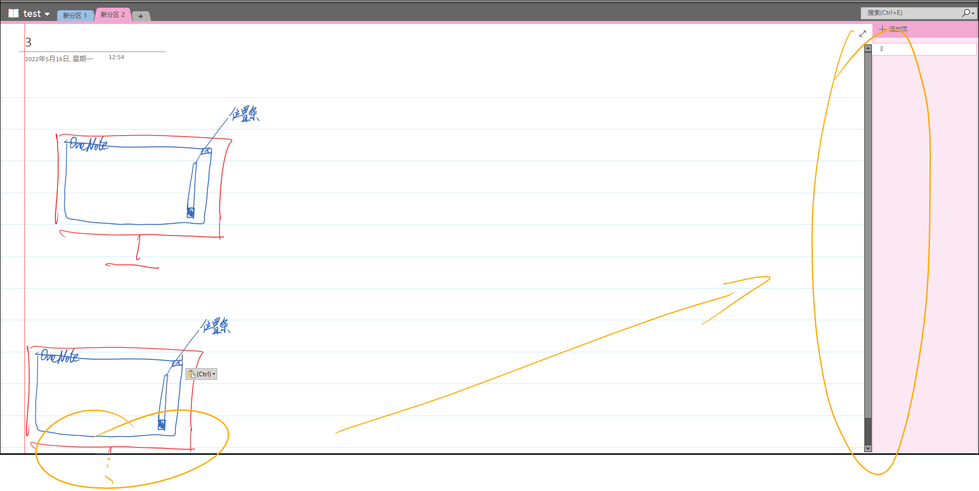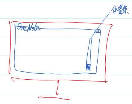 当OneNote的当前默认视图的空间到了最底部时,可否通过鼠标继续往下方自动追加或删除尾部追加的空白空间。为了方便描述,我画了一个简笔画。红色代表显示器范围,蓝色是OneNote。