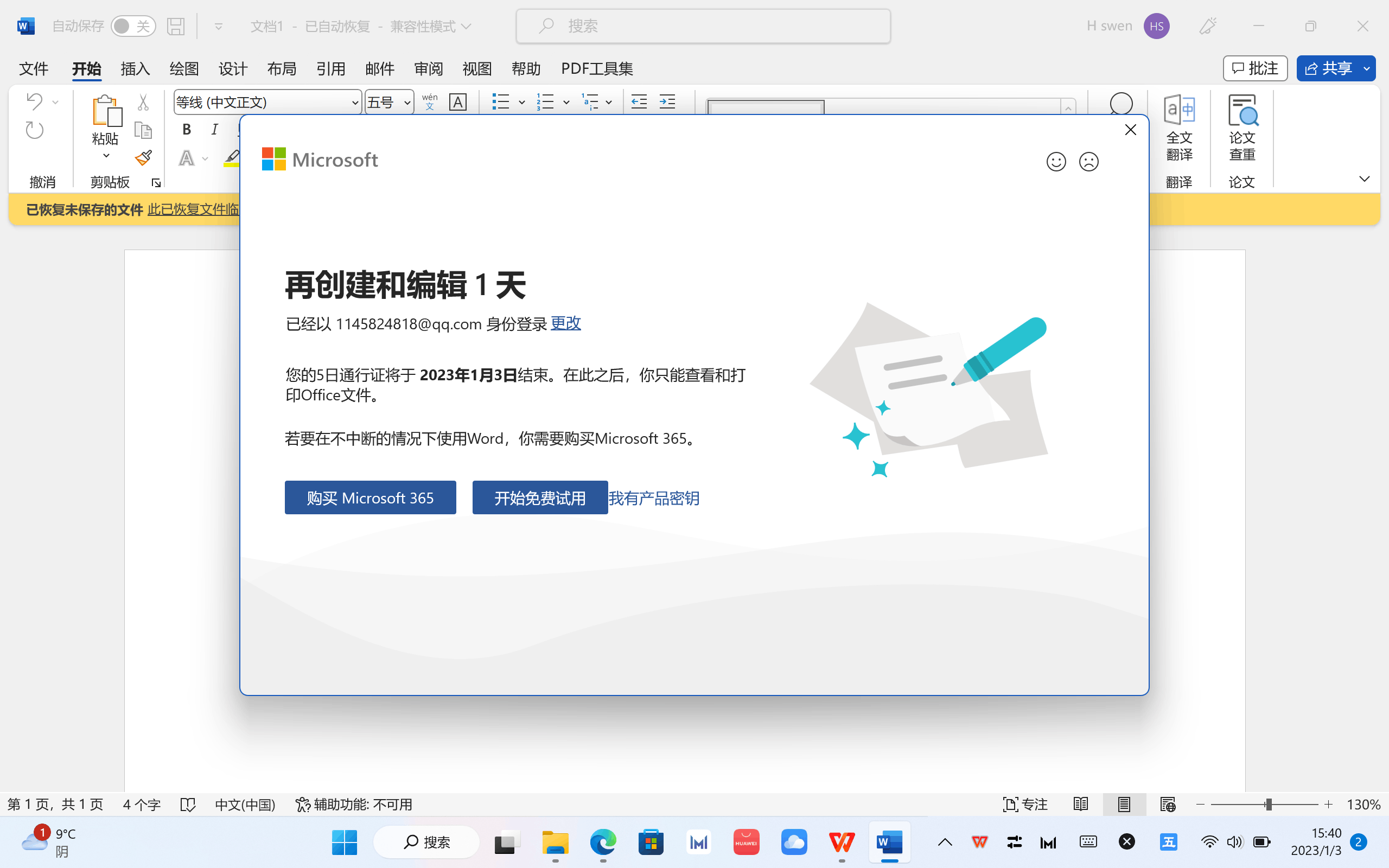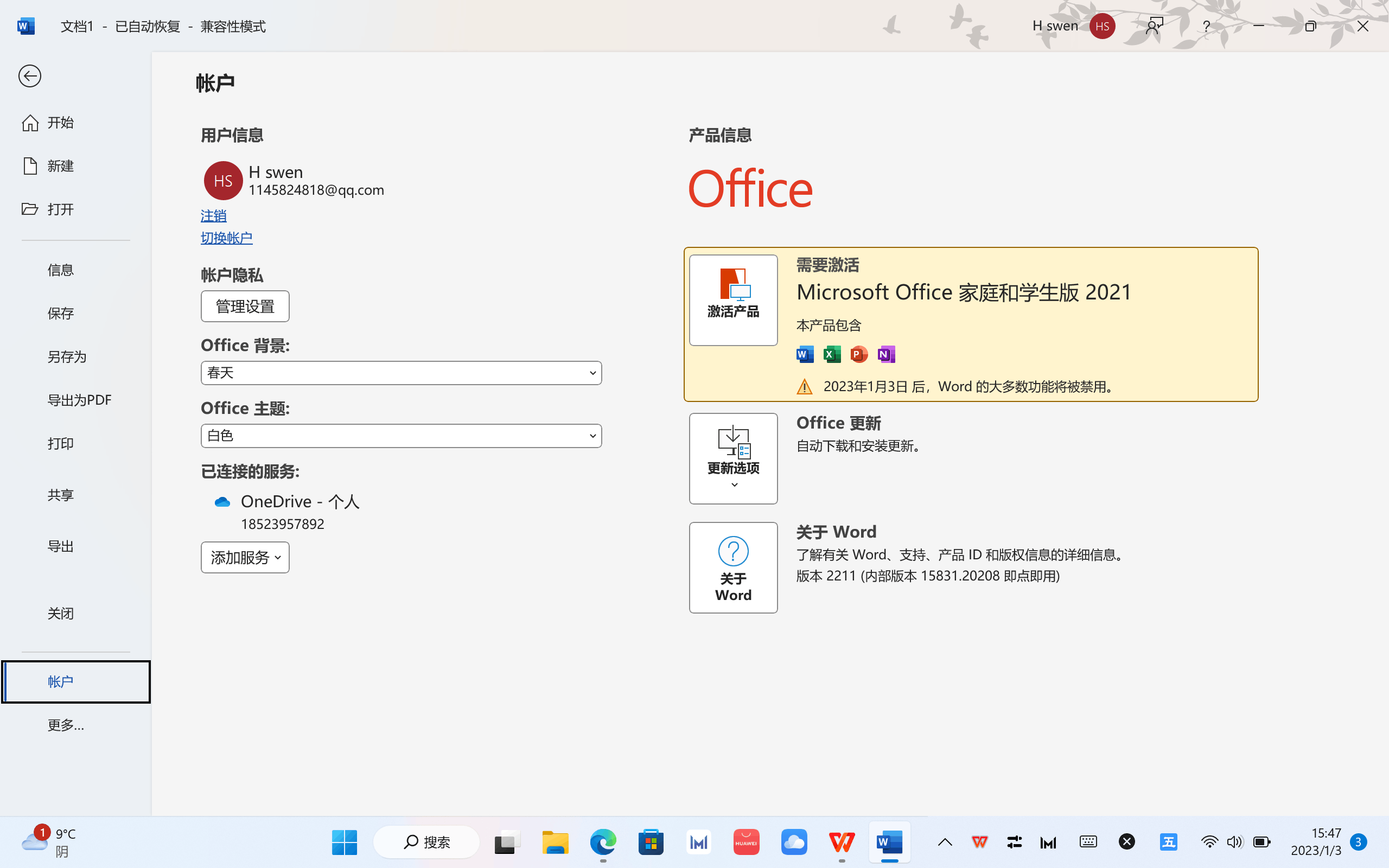 用于激活Office的微软账户: ******@qq.com