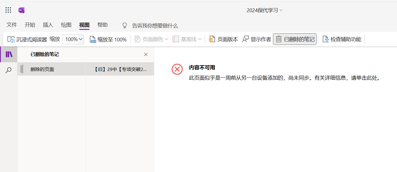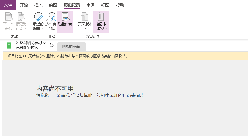 如果您是删除的分区或页,可以点击“笔记本回收站”中能否将删除的页面恢复。