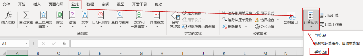 手动计算模式是 Excel 指仅在你通过按 F9 或 Ctrl+Alt+F9 请求重算或在保存工作簿时重新计算所有打开的工作簿。