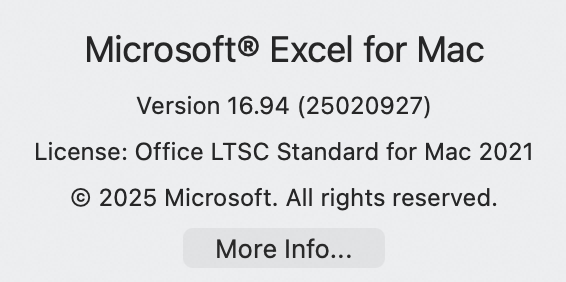 同时,我注意到您使用的是Office LTSC Standard for Mac 2021,这和我们论坛支持的商业版存在较大区别,并且作为此论坛的版主,我没有对应的资源来部署此版本的Office应用,因此,我也建议您可以移步此论坛发帖讨论:Questions - Microsoft Q&A,这里的专家有合适的资源可以部署Office LTSC Standard for Mac 2021从而协助您进行测试和调查。