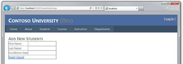 要部署的应用程序名为 Contoso University,并且已为你创建。 它是一个简化版本的大学网站,基于 contoso University 应用程序在 ASP.NET 网站上的 Entity Framework 教程中所述的松散版本。