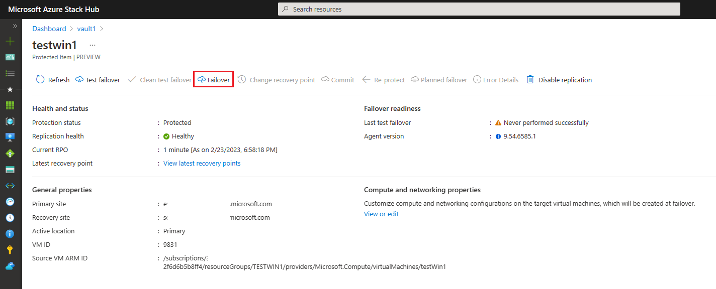 如果源环境出现问题,你可以选择将 VM 故障转移到目标环境。