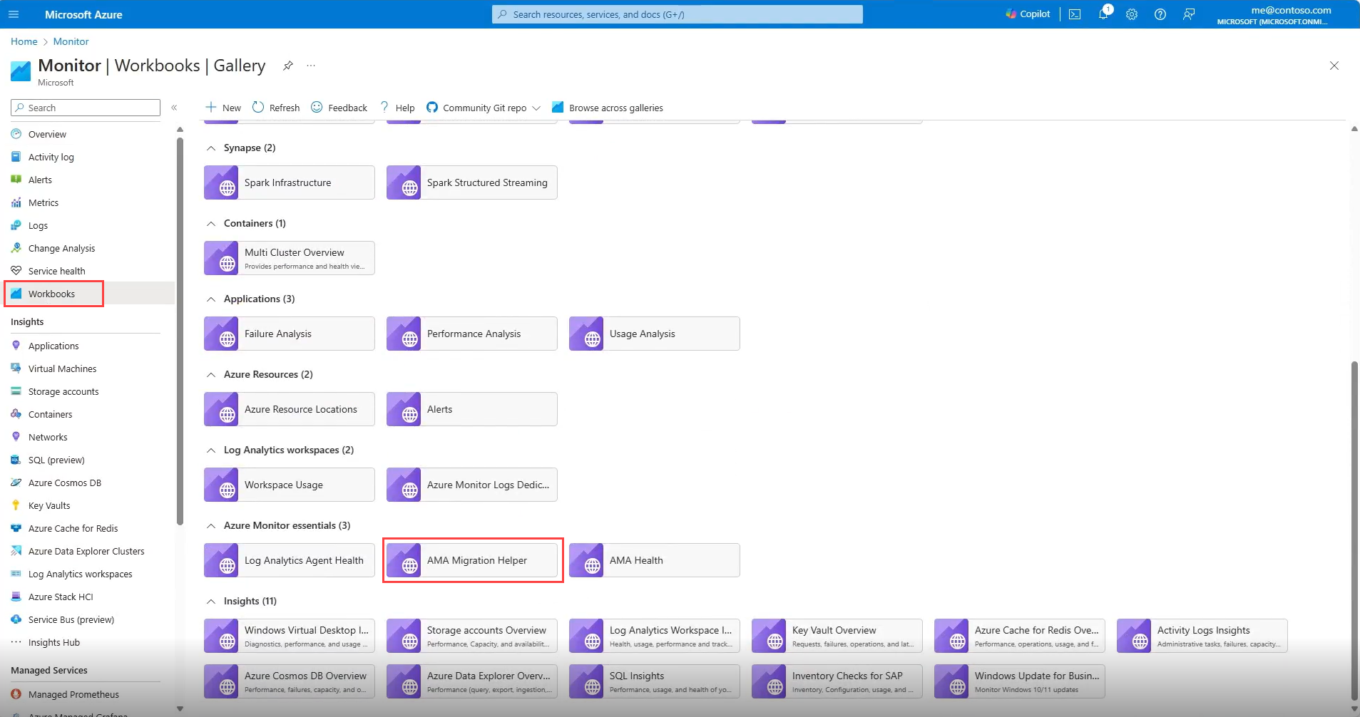 - 导航到 Azure 门户中的“Monitor”页面,然后选择“工作簿”。