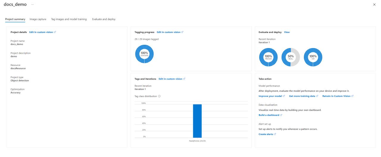 在“标记图像和模型训练”页面上,单击“在自定义视觉中打开项目” 。