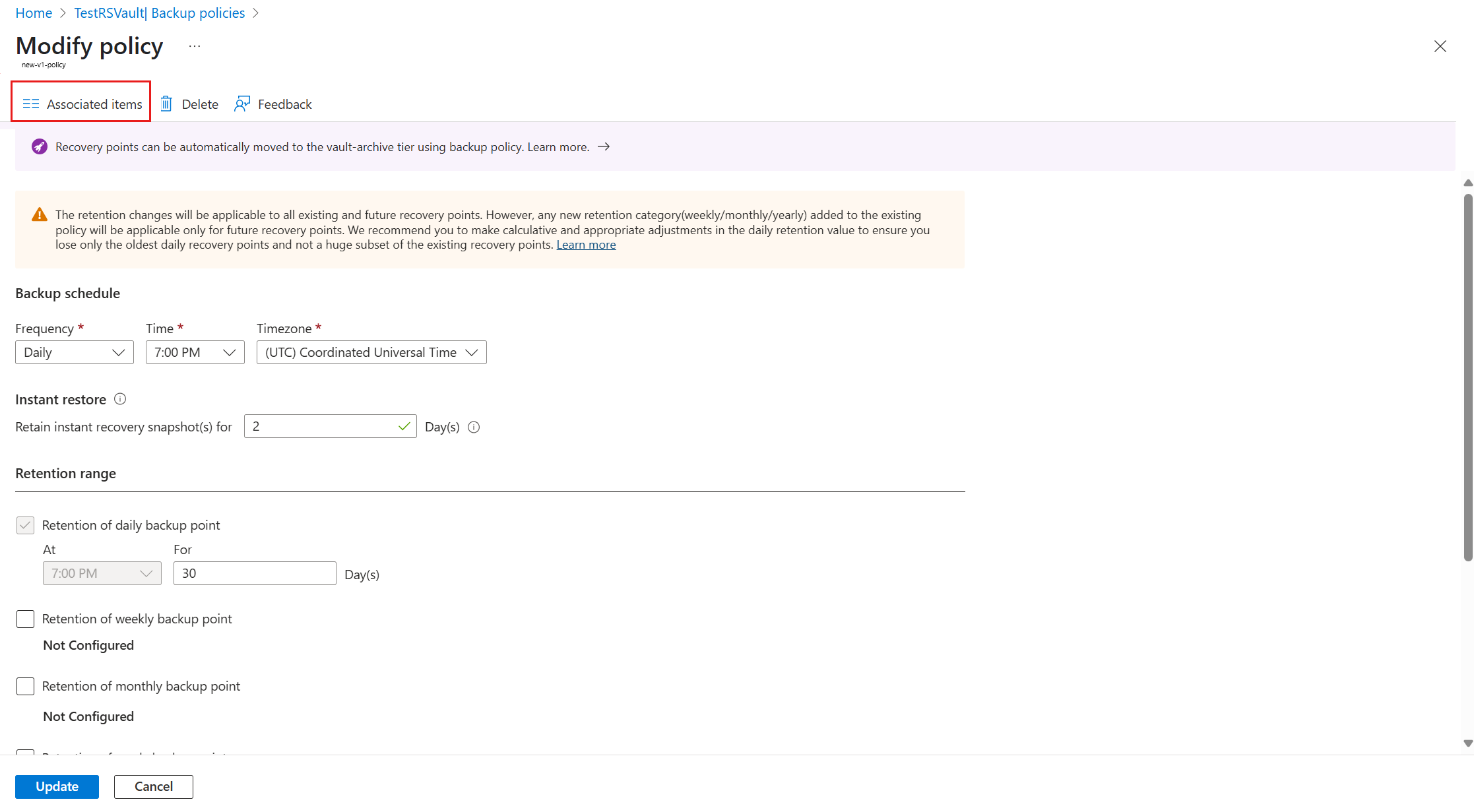 - 将 VM 备份项从标准策略迁移到增强策略时,该过程会触发一个备份作业,该作业可能需要数小时才能用于大型 VM。 此预防措施备份使用托管磁盘快照 - 从完整磁盘副本开始进行即时还原,这会增加备份时间。 以后的快照是增量快照,仅存储自上次快照以来的更改。 如果使用非托管磁盘,请确保托管快照或 VHD 文件的存储帐户允许公用网络访问或类似设置;否则,系统会回退到标准恢复点还原,这会减缓恢复速度。