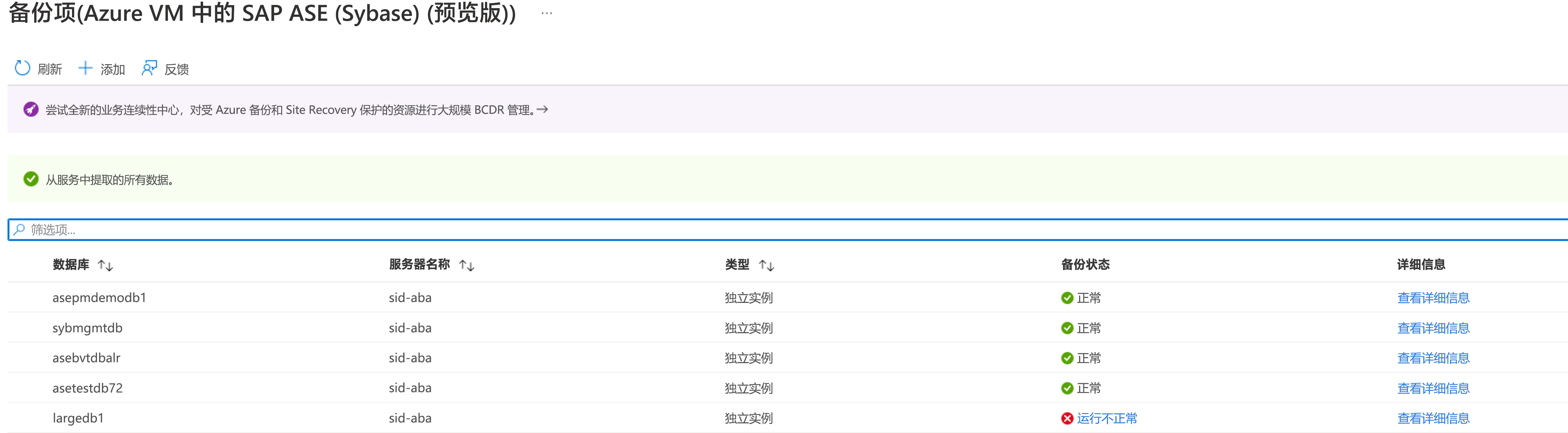 本文介绍如何使用 Azure 门户管理 SAP Adaptive Server Enterprise (ASE) (Sybase) 数据库(在 Azure 虚拟机上运行)。 Azure 备份允许监视作业和警报、触发按需备份、编辑策略、停止和恢复数据库保护,以及从备份中注销虚拟机(VM)。