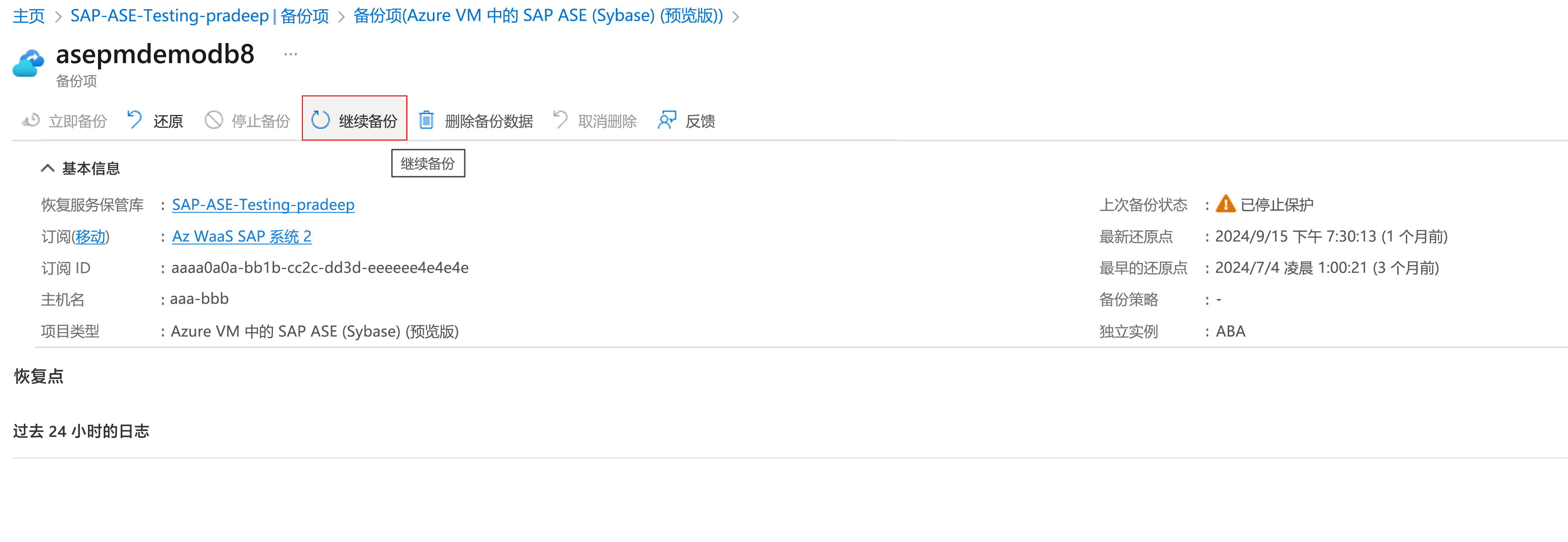 恢复对 SAP ASE 数据库的保护