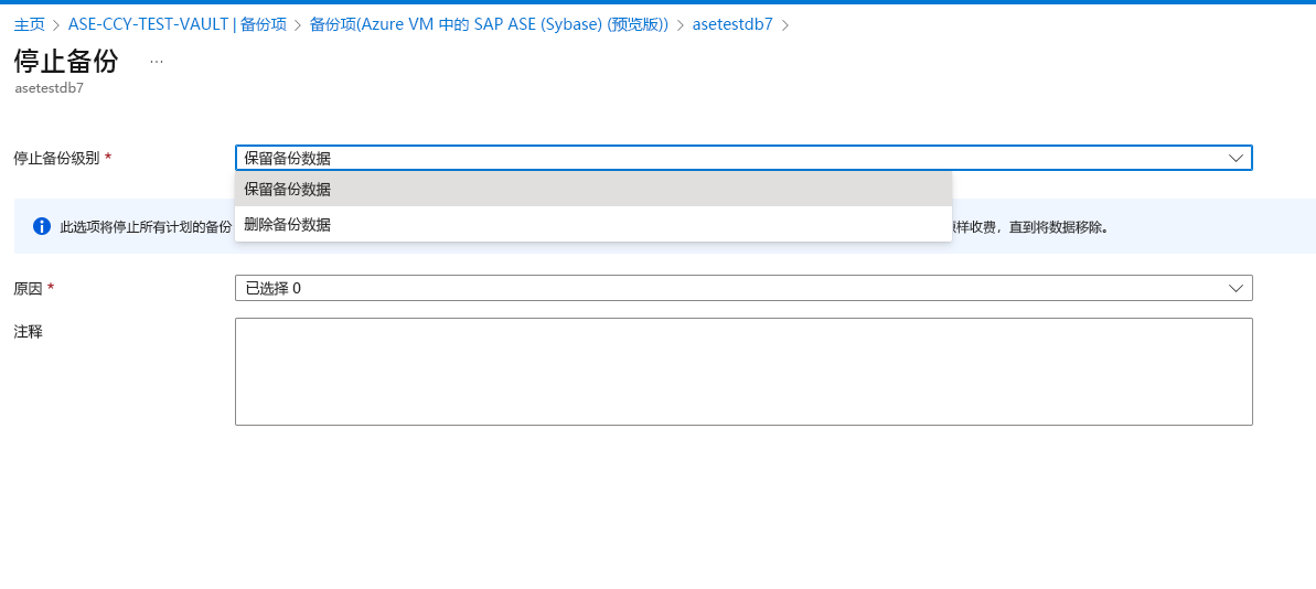 保留备份数据:停止所有将来的备份作业,并使恢复点保持不变。