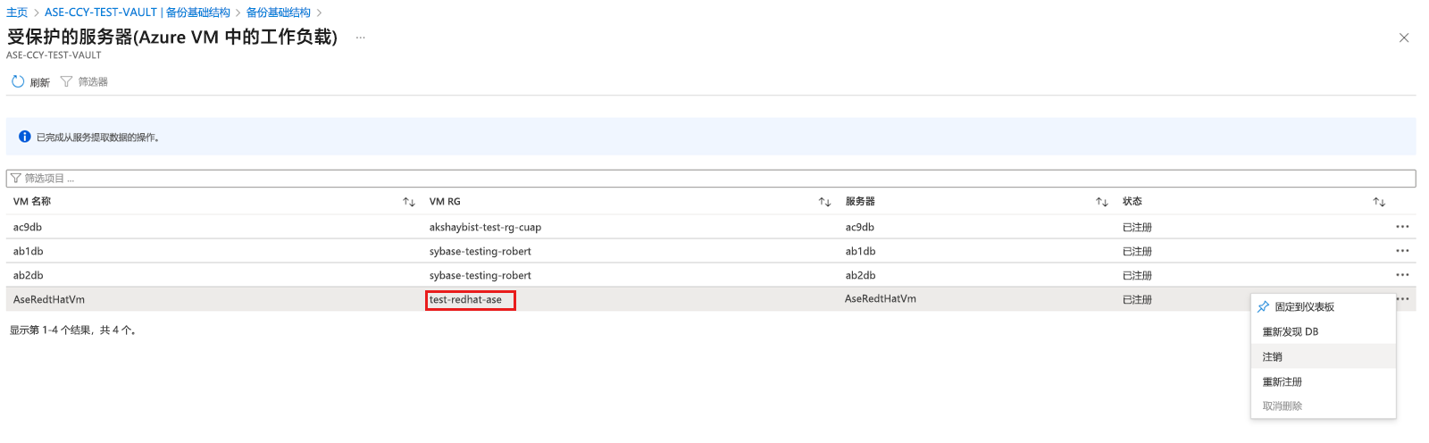 在禁用保护之后但删除保管库之前取消注册 SAP ASE 实例。