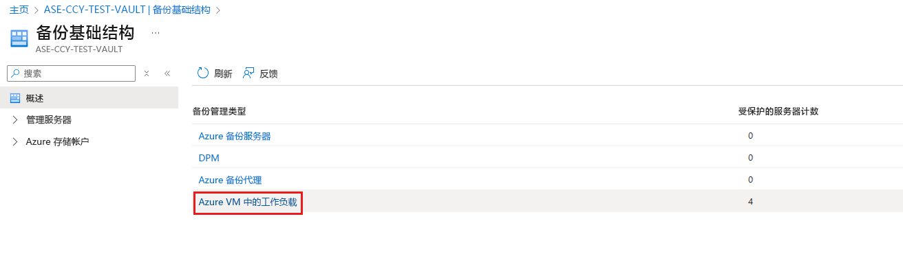 在 “备份基础结构 ”窗格中,对于 “备份管理类型”,选择 Azure VM 中的工作负荷。